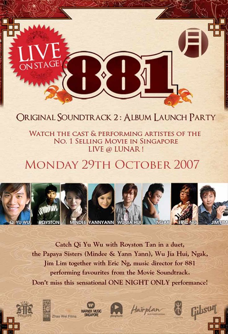speaking of songs and 主题曲 and 插曲..the 881 OST launch is gonna be on the coming Monday at Lunar!! and guess what..i am going..hahaha..